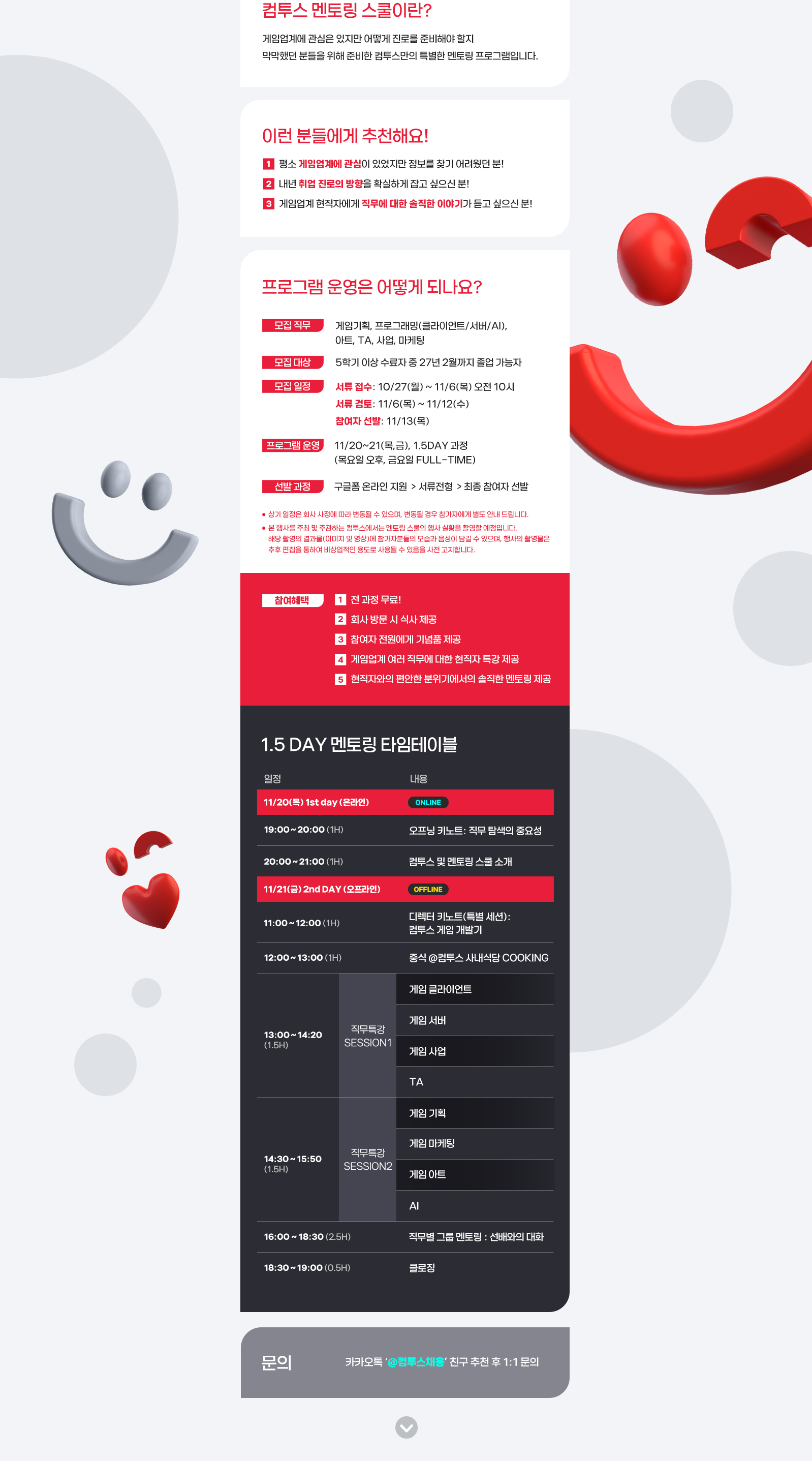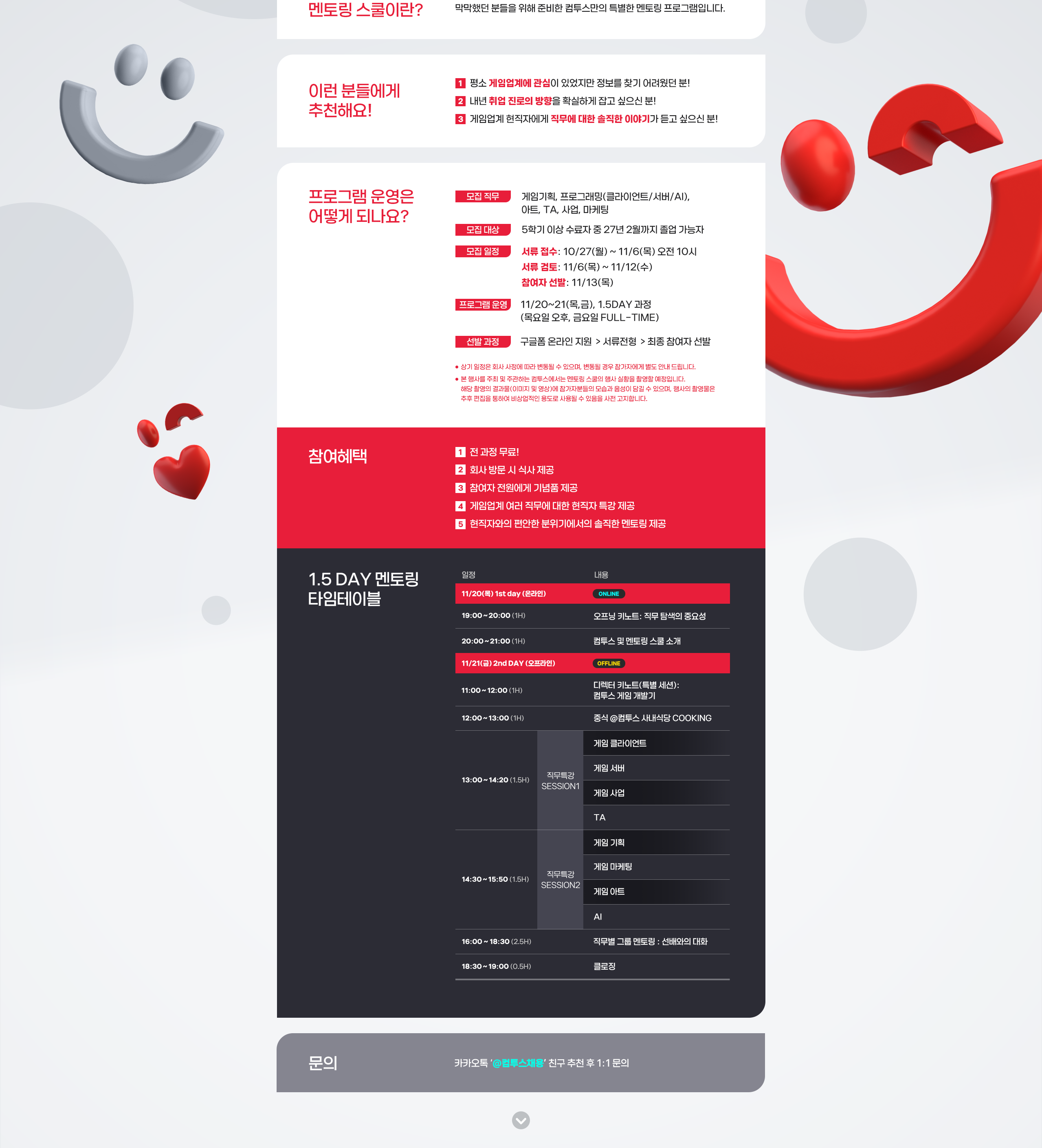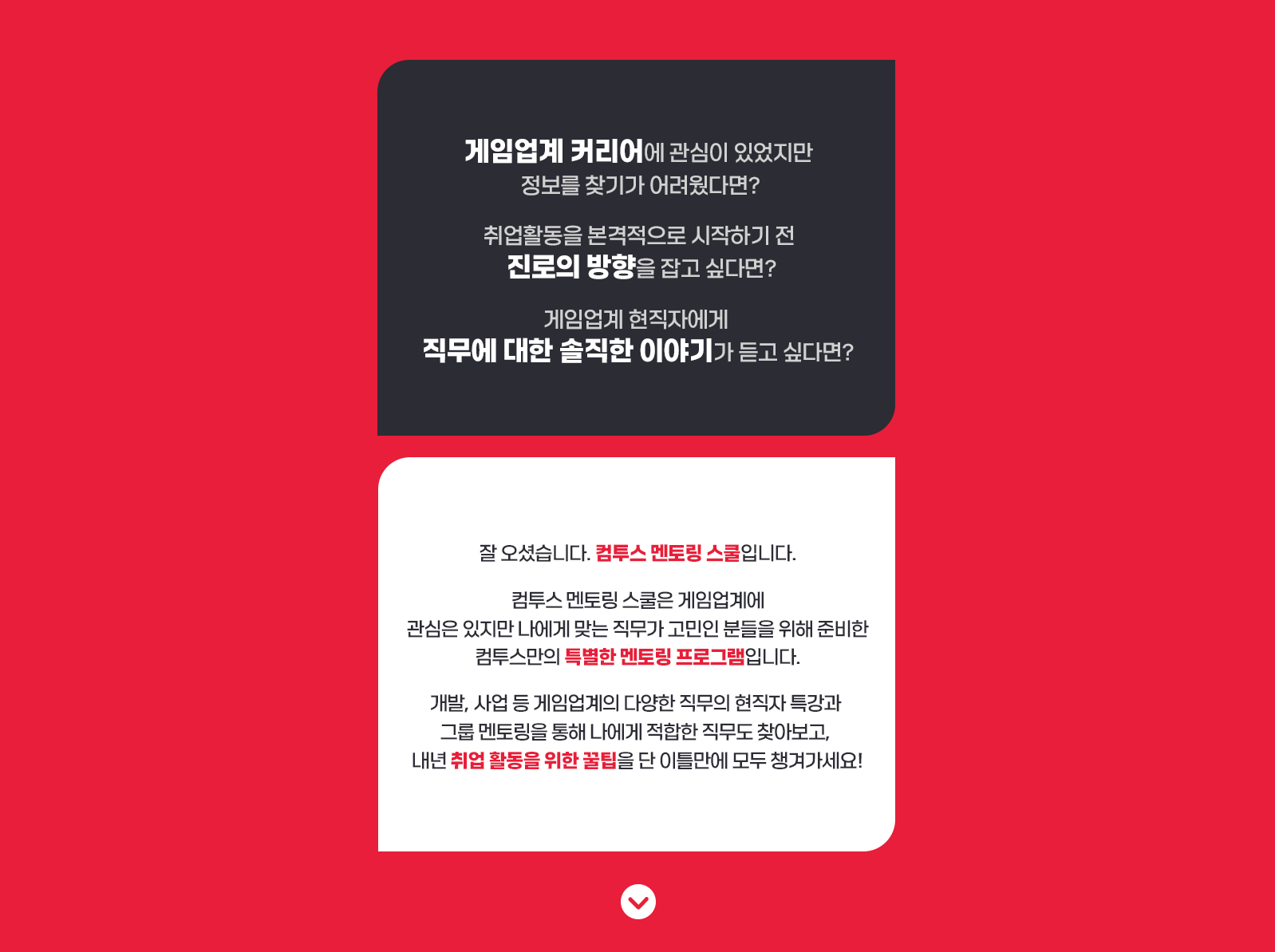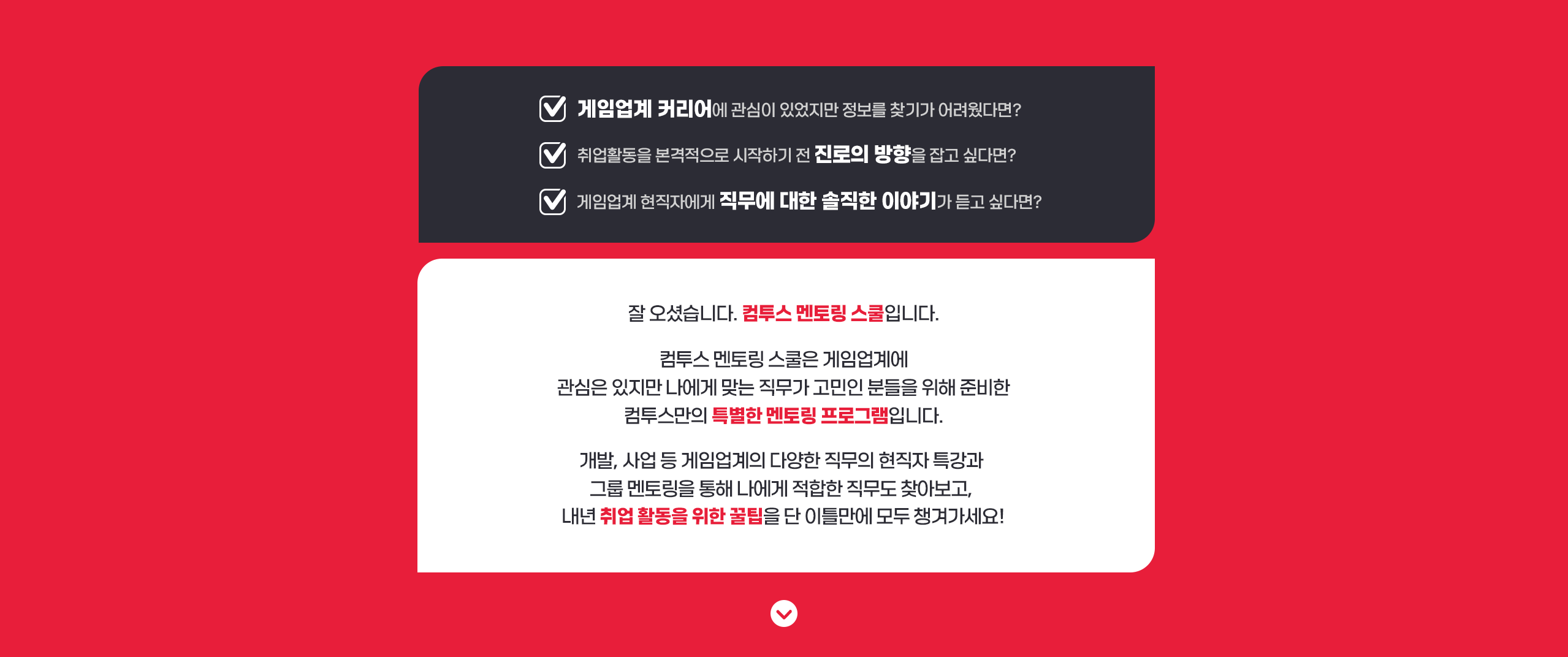 게임업계에 관심이 막 생기신 분부터 준비를 하고는 있지만 제대로 된 방향으로 나아가고 있는 것이 맞는지 궁금하신 분들까지 모두에게 큰 도움이 되는 프로그램인만큼 강력하게 추천드리고 싶습니다.
